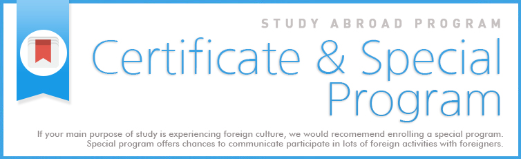 如果你留學的主要目的是體驗外國文化,我們會推薦你報名一個特別課程。特別課程提供交流以及與外國人一起交流活動的機會。即使您留學的目的不是體驗新的外國文化,學校也提供不同的課程如設計,烹飪,IT,商務。此外,你還可以參加實習作為預備自己的職業生涯。如果一個國家的官方語言是一種以上的語言,你還可以學習到其他語言。